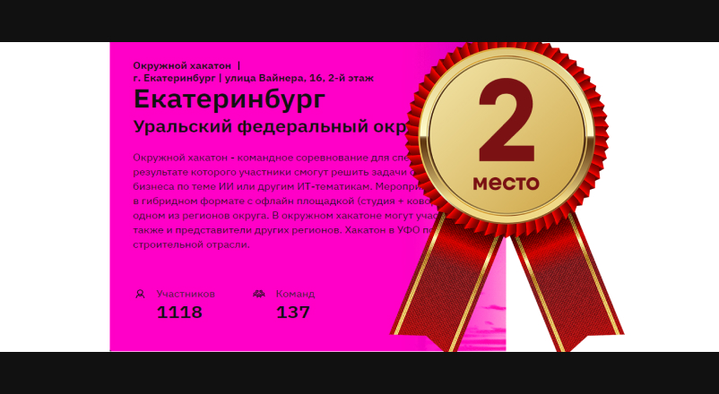 От всей души хотим поздравить нашу команду разработчиков платформы ПИРС, принявших учавстие в командном соревновании для специалистов ИТ Уральского Федерального Округа, в результате которого заняли 2-е место, решая задачу поставленную ФАУ «Главгосэкспертиза России» по теме Искуственный интеллект и другие ИТ-тематики.