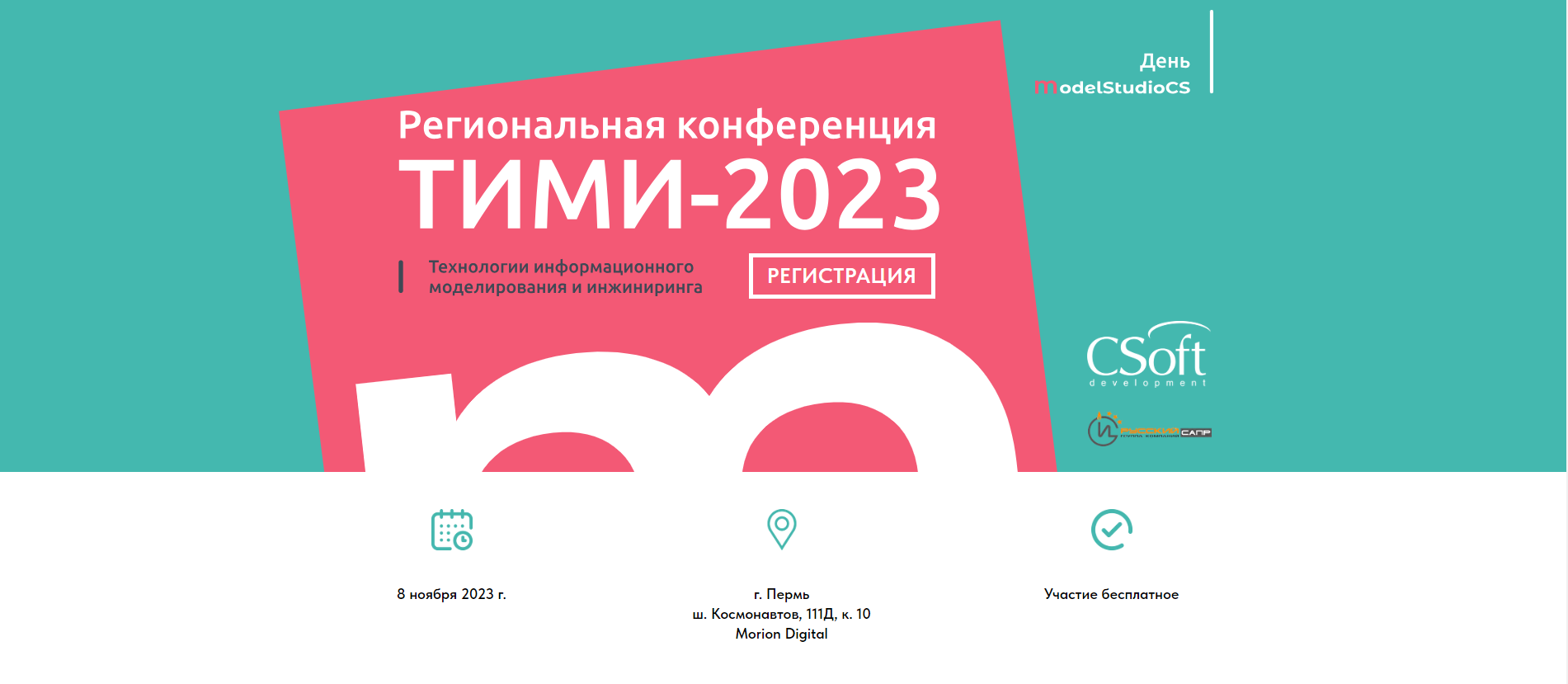 8 ноября 2023 года ГК «Русский САПР» при поддержке «СиСофт Девелопмент» проведет в Перми специализированную конференцию «ТИМИ-2023. Технологии информационного моделирования и инжиниринга».